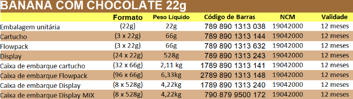 Barra de Cereal Banana com Chocolate